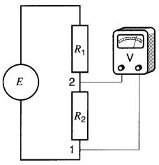 Bien que la présence du voltmètre ait un effet négligeable dans les circuits industriels, elle peut cependant entraîner des erreurs de mesure très appréciables dans les circuits électroniques où les résistances RI et R2, par exemple, auraient des valeurs très élevées.