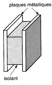 Le condensateur le plus simple est composé de deux plaques métalliques séparées par un isolant ou diélectrique (Fig. 21-1).