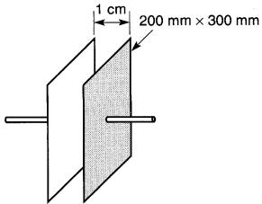 Deux plaques de 200 mm x 300 mm sont distantes de 1 cm dans l'air (Fig. 21-2).