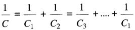 Lorsque deux ou plusieurs condensateurs sont branchés en série, la capacitance équivalente C de l'ensemble est donnée par l'expression: