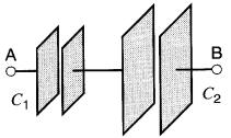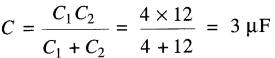 De cette formule, on déduit que la capacitance équivalente C de deux condensateurs en série (Fig. 21-5) ayant des capacitances C1 et C2 est donnée par: