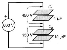 Exemple 21-3 Deux condensateurs de 4 µF et de 12 µF sont branchés en Série sur une source à c.c. de 600V (Fig.21-6).