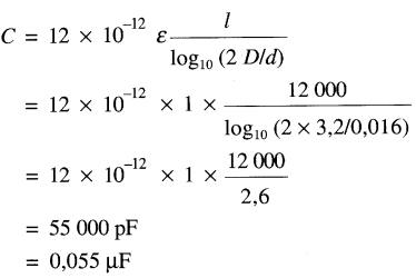 21-22 Calculer la capacitance entre deux fils nus #4 espacés de 0,5 m et ayant une longueur de 10 km.