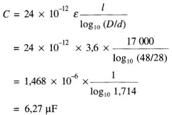 Trouver la capacitance d'un câble sous-marin long de 17 km et dont les diamètres sont :