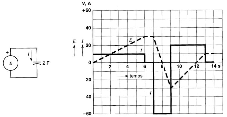 21-10 La tension aux bornes d'un condensateur de 10 µF change de +60V à +300V en 1 ms.