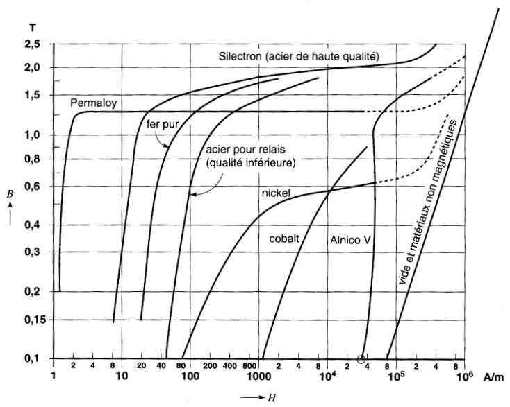 Pour chaque type de matériau magnétique, cette dernière relation est présentée sous forme d'une courbe B-H.