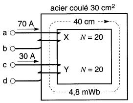 14-22 Dans la Fig. 14-20, si le courant dans la bo- bine X est de 70 A, quel courant doit-on faire circuler dans la bobine Y afin que le flux devienne nul?