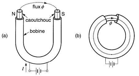 b. Lorsque la bobine est refermée sur elle-même, le flux demeure, mais les pôles N,S disparaissent