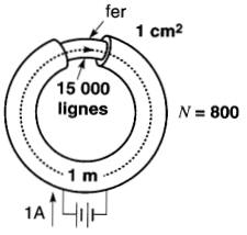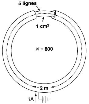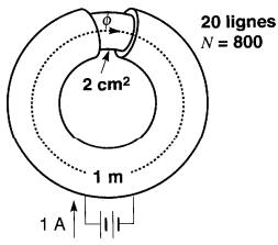 Considérons de nouveau le solénoïde toroïdal de la Fig. 14-3 dont la longueur moyenne du chemin magnétique est de 1 mètre, et la section de 1 cm².