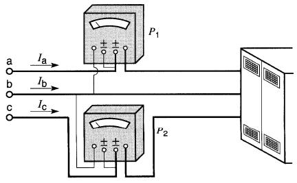 26-10 Donner le montage de deux wattmètres dans un circuit triphasé à 3 fils.