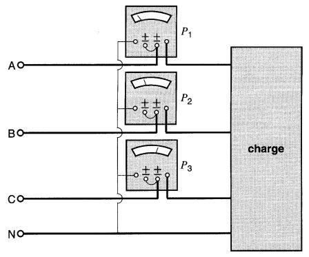 À première vue, il semble que la section du fil neutre doive être trois fois plus grande que celle des lignes a, b et c. Cependant, le diagramme vectoriel de la Fig. 26-5b montre que la somme vectorielle de ces trois courants est nulle.