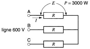 26-25 Trois résistances branchées en triangle sur une ligne triphasée consomment 60 kW.