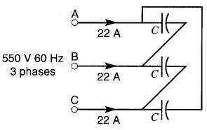 26-23 Trois condensateurs de 10 µF sont montés en étoile sur une ligne triphasée à 2,3 kV, 60 Hz.
