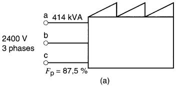 26-30 Une charge résistive-inductive branchée sur une ligne à 2,4 kV absorbe une puissance apparente de 600 kVA à un FP de 80%. Déterminer les valeurs de R et de XL en supposant une connexion semblable à celle montrée à la Fig. 26-12.