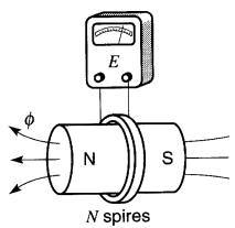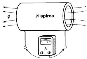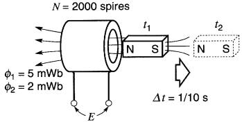 Une bobine comprenant 2000 spires est traversée par un flux de 5 mWb provenant d'un aimant permanent (Fig. 18-3).