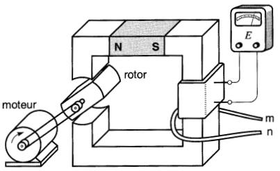 Cette variation périodique induit une tension alternative dans la bobine qui subsiste aussi longtemps que le rotor tourne. La valeur moyenne de la tension induite pendant 1/4 de tour vaut E = (θ1 - θ2)/Δt volts, Δt étant le temps pris pour exécuter cette fraction de tour.