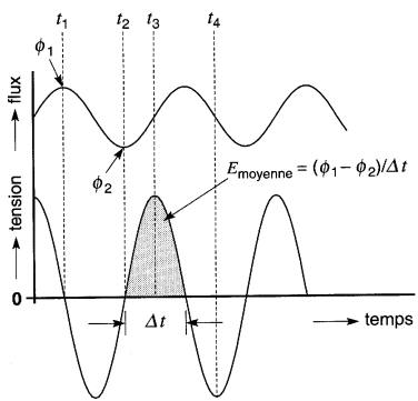 Si le flux varie d'une quantité Δθ pendant un intervalle de temps Δt, la valeur de la tension induite dans chaque spire est Δθ /Δt volts. Pour N spires, la tension E est donc N fois plus grande, soit: