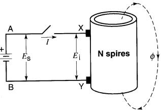 Figure 18-14 Circuit dont tout les composants ont une résistance nulle. Lorsque l'interrupteur est fermé, la tension induite EI est rigoureusement égale à la tension Es de la source.