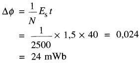 On a Es = 15 V, une tension essentiellement continue. Le changement de flux requis pour atteindre la saturation est: