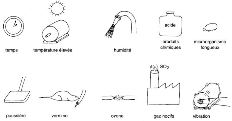 Les facteurs qui concourent le plus à la détérioration des isolants organiques sont : la chaleur, l'humidité, les vibrations, l'acidité, l'oxydation et les surtensions (Fig. 9-3).