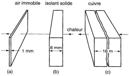 Figure 9-6 Une couche d'air ayant une épaisseur de 1 mm seulement, offre la même résistance au transport de la chaleur que 8 mm d'un isolant solide ou 16 000 mm de cuivre