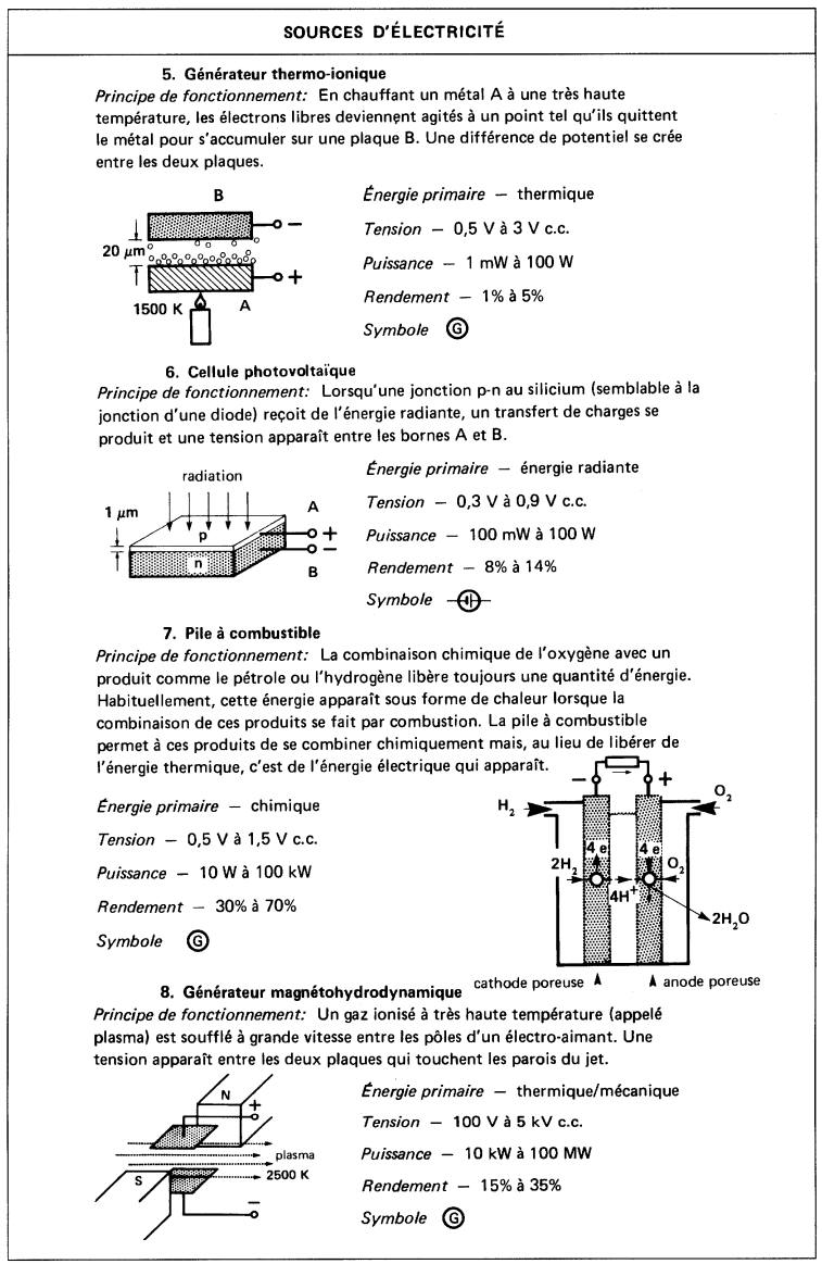 Les figures 3-1 et 3-2 montrent huit types de sources d'électricité.