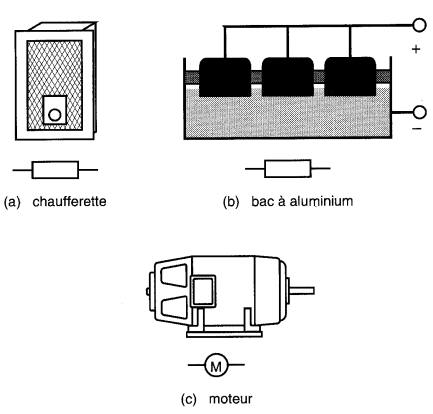 Il existe bien d'autres appareils et dispositifs qui agissent comme charges électriques. Mentionnons les téléviseurs et les lampes fluorescentes qui transforment l'énergie électrique en énergie radiante visible, de même que toute la gamme des équipements électroniques de commande et de puissance.