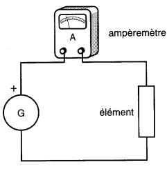 Fait important à retenir: l'ampèremètre est intercalé dans le conducteur qui mène à l'élément, tandis que le voltmètre est branché directement aux deux extrémités de l'élément.