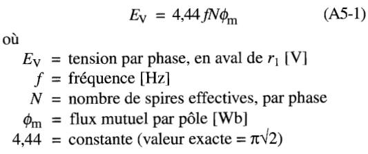 Tout comme dans un transformateur, la relation entre la tension appliquée et le flux mutuel dans un moteur est donnée par l'équation:
