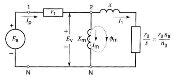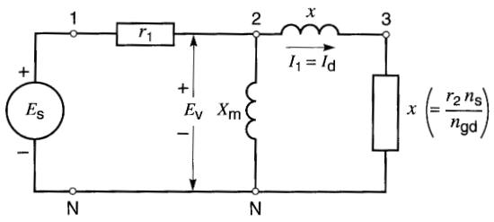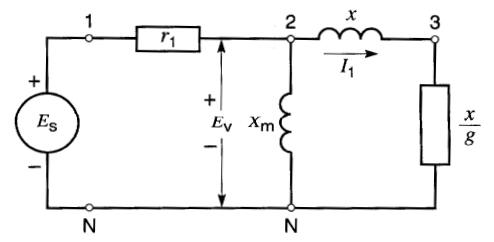 On peut donc exprimer la résistance de puissance en fonction de la réactance de fuite x et du facteur de glissement g. Cela est mis en évidence dans le circuit de la Fig. A5-4.