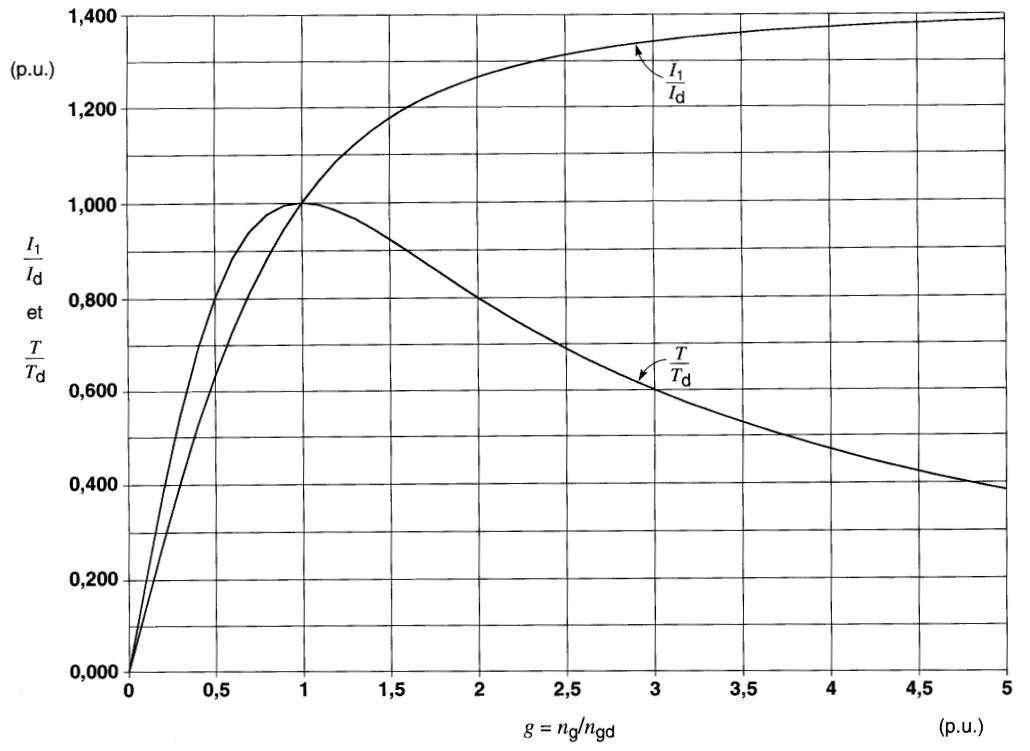 Les graphiques de T/Td et Il /Id en fonction de g sont universels en ce sens qu'ils s'appliquent à n'importe quel moteur asynchrone polyphasé.