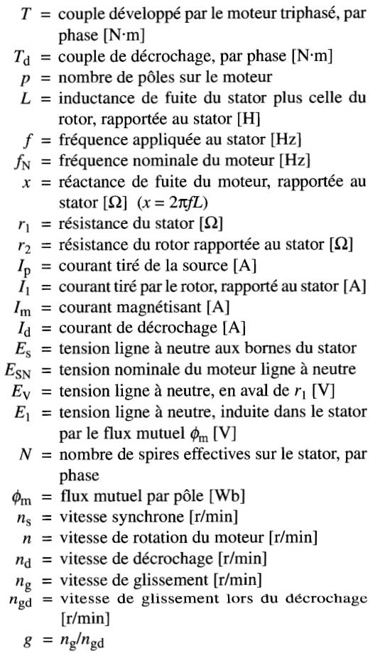 Donc, pour une phase, le couple Td lors du décrochage est donné par: