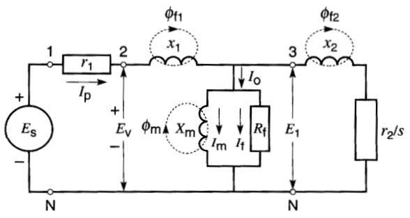 Ces modifications influencent légèrement le comportement du moteur, mais elles mettent en évidence ses caractéristiques principales. Ainsi, on peut combiner les réactances x1 et x2 en une seule réactance de fuite x.
