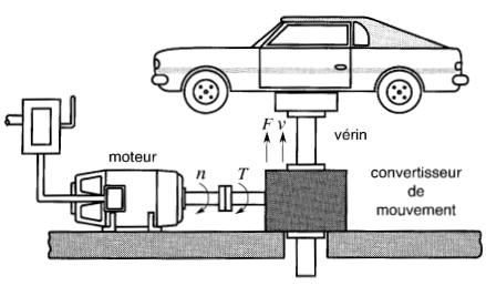 Le pont de la Fig. 1-17 doit soulever une voiture de 1400 kg à une vitesse de 1,5 m/min.