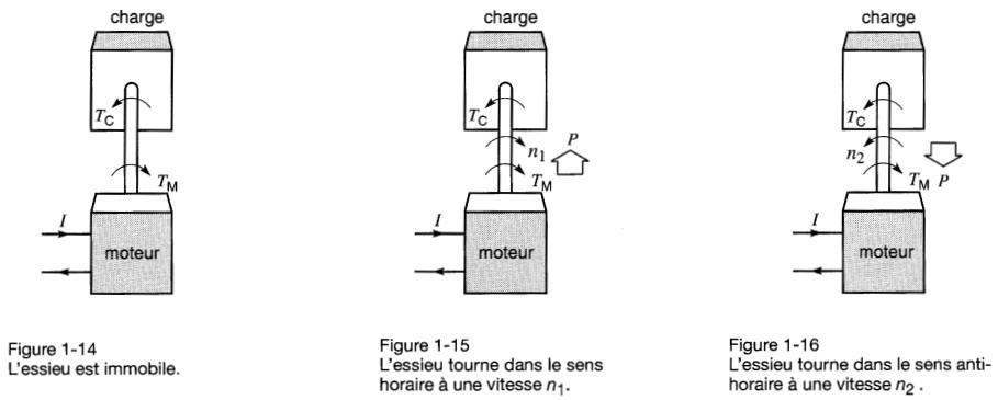 Par exemple, dans le cas de la Fig. 1-16, le moteur reçoit de la puissance de la charge parce que TM et n2 agissent en sens contraires.