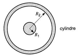 20-18 En se référant à la Fig. 20-10, on donne: R1 = 4 mm, R2 = 6 mm, tension entre le conducteur central et le cylindre métallique = 2400V.