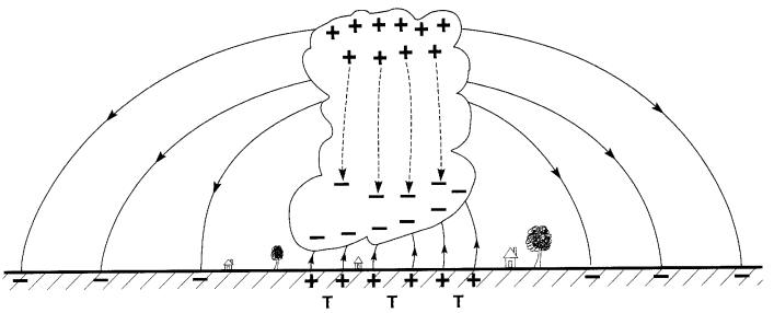Ainsi, le contact momentané entre les cristaux de glace et les gouttes d'eau en suspension dans un nuage produit une séparation des charges qui donne éventuellement naissance à des éclairs.