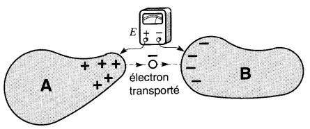 Ainsi, lorsqu'on transporte un électron d'un corps positif à un corps négatif, il faut exercer une force car l'électron est à la fois repoussé par le corps négatif et attiré par le corps positif.