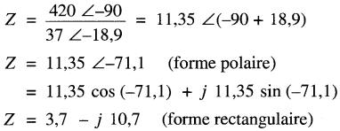 et en utilisant le calcul vectoriel, déterminer la valeur de l'impédance