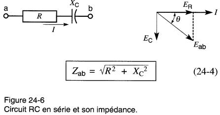 Le rapport E/I dans un circuit à courant alternatif s'appelle l'impédance du circuit (Fig. 24-1) et il se mesure en ohms.