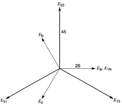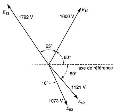 E13 = 125 V à 6,9°; E32 = 75 V à -120°;