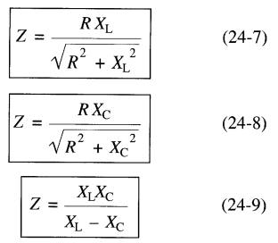 a) Déterminer, à l'aide de formules seulement, l'impédance des circuits des Fig. 24-28 à 24-30.