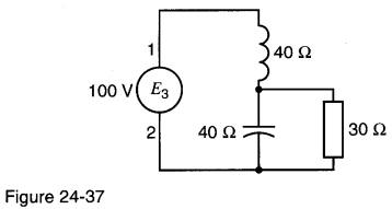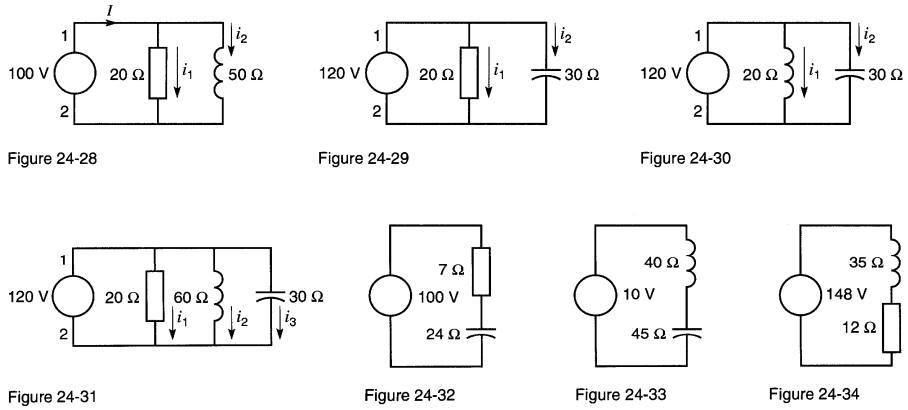 24-3 Déterminer la valeur du courant dans les éléments résistif, inductif et capacitif des Fig. 24-28 à 24-31 inclusivement.