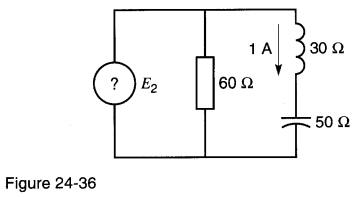 24-4 Dans la Fig. 24-30, quelle réactance inductive doit-on placer en série avec la réactance de 20Ω pour que le circuit devienne résonnant?