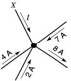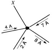 Trouver la valeur du courant dans le fil X (Fig. 8-11), connaissant la valeur et le sens des courants dans les quatre autres fils.