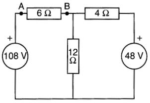 8-18 Dans la Fig. 8-26, si l'on branche une résistance de 14Ω en parallèle avec la résistance de 6Ω, quelle sera la tension à ses bornes ? (Utiliser de préférence le théorème de Thévenin.)