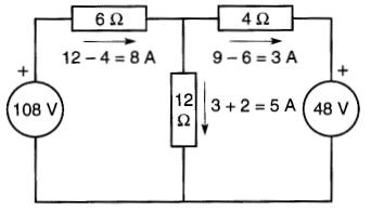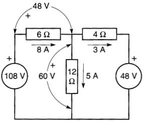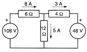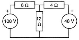 8-17 Dans la Fig. 8-21, si l'on intervertit la polarité de la source de 48V, quel sera la valeur du courant dans la résistance de 12Ω ?