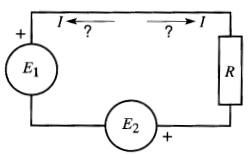 Si l'on ne connaît pas la valeur de E1 ni celle de E2, on ne peut pas en déduire le sens que prendra le courant I résultant.