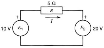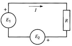 8-2 Dans la Fig. 8-38d, E1 = + 10V, E2 = -30 V et R = 5Ω. Trouver la valeur et le sens réel du courant I.