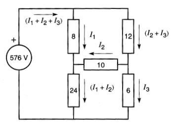 8-16 Dans la Fig. 8-21, si l'on place une résistance de 10Ω entre les bornes positives des deux sources, quel sera le courant dans cette résistance? Quelles seront les nouvelles valeurs du courant dans les autres éléments résistifs ?